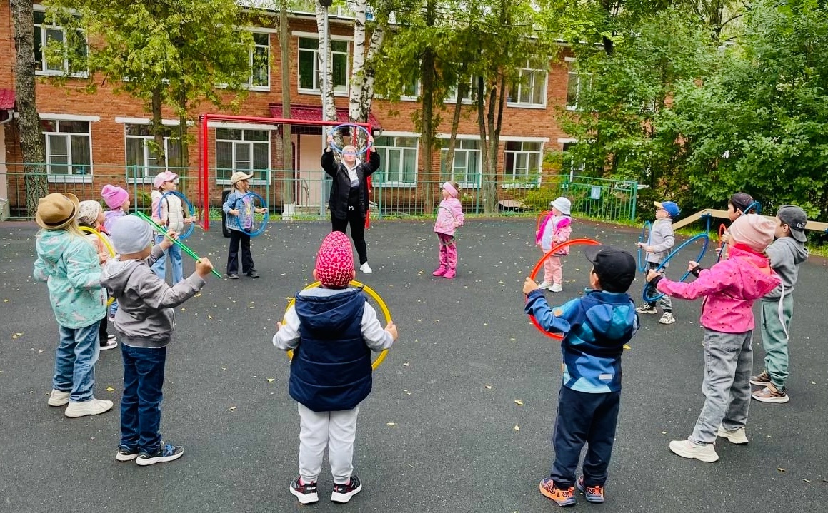На дошкольных площадках прошли увлекательные утренние зарядки и мастер-классы по игре «Городки».