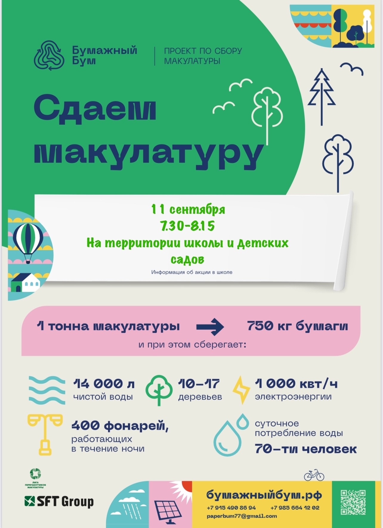 Сбор макулатуры состоится 11 сентября с 07.30 до 08.15 утра на всех образовательных площадках.
