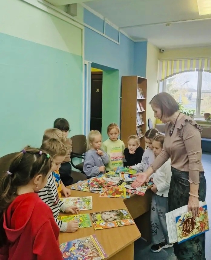 Педагог-библиотекарь Татьяна Николаевна Северина радушно встретила дошкольников. Они ближе познакомились с детскими книгами, красочными энциклопедиями и журналами, а также выполнили различные задания.